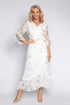 White Beaded Flower Wrap Dress