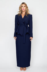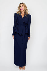 Navy Peplum Jacket with Tie Belt with Circa 80&