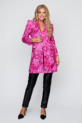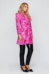Hot Pink Longline Jacket with Glossy Sequin Pant
