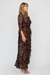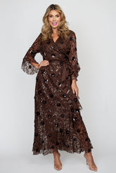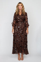 Chocolate Sequin Tulle Wrap Dress