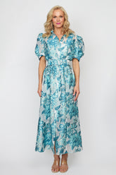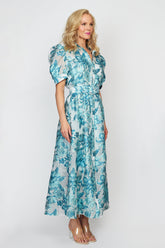 Aqua Blue Organza Hibiscus Dress