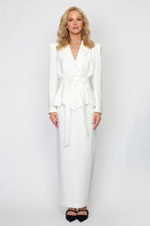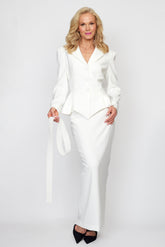 White Peplum Jacket with Tie Belt with Circa 80&